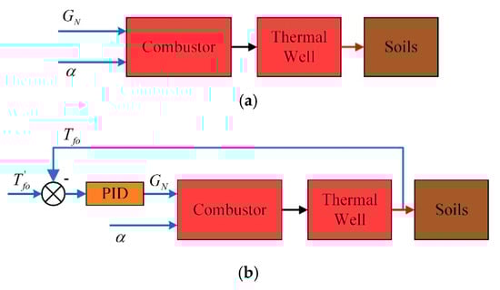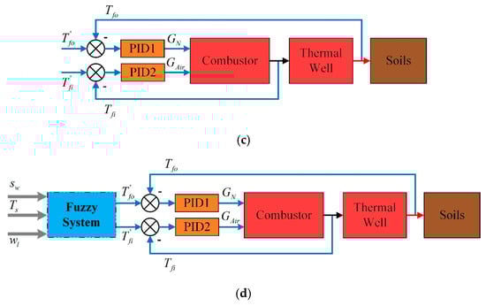 The control layer contains multiple heating devices inserted into soils. There are two proportional-integral-derivative (PID) controllers, a combustor and a thermal well in each device. Two PID controllers adjust the natural gas flow and air flow separately. In order to analyze the superiority of control strategy, the mathematical model of heating field, thermal wells, and combustors is developed in this layer.