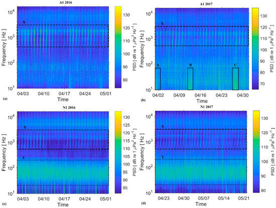 - Parsons, M.; Erbe, C.; McCauley, R.; McWilliam, J.; Marley, S.; Gavrilov, A.; Parnum, I. Long-term monitoring of soundscapes and deciphering a usable index: Examples of fish choruses from Australia. In Proceedings of the Meetings on Acoustics 4ENAL, Dublin, Ireland, 10–16 July 2016; ASA, 2016; p. 010023. [Google Scholar]