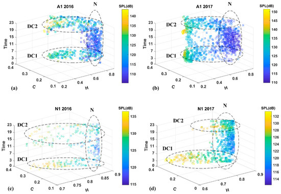 - Buscaino, G.; Ceraulo, M.; Pieretti, N.; Corrias, V.; Farina, A.; Filiciotto, F.; Maccarrone, V.; Grammauta, R.; Caruso, F.; Giuseppe, A. Temporal patterns in the soundscape of the shallow waters of a mediterranean marine protected area. Sci. Rep. 2016, 6, 34230. [Google Scholar] [CrossRef]