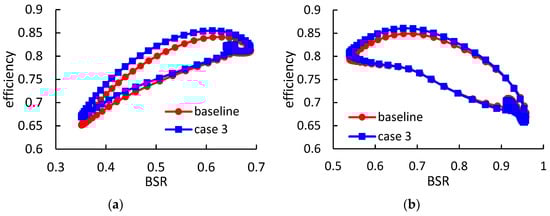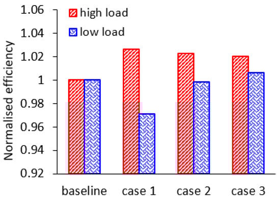The average efficiency improvements in case 2 and case 3 under high-load conditions are 2.27% and 2.02%, respectively, when compared with the baseline. Furthermore, the average efficiency in cases 2 and 3 under low-load conditions are equal to or slightly higher than the baseline.