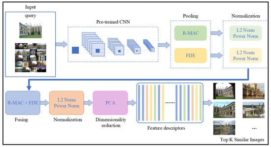 Lastly, we perform L2, power normalization, and PCA to generate more effective feature representations, which is significant to improve the performance of image retrieval. We define as the power normalization parameter for the fused features. The retrieval process with our fused feature descriptor is illustrated in Figure 3.