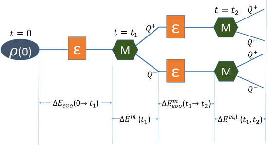 Similarly, in (Equation (7)) is the energy change of the whole process, when a single observable is measured at three time steps. The energy change of the whole process of Equation (7) includes: