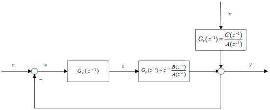 where F(q−1) = 1 + n1q−1 + … + nτ − 1q−(τ−1), the coefficients of F(q−1) are the impulse response coefficients of Gl, and R(q−1) is the proper transfer function, satisfying the rest of the Diophantine identities. Substituting Equation (5) into Equation (4), Equation (4) can be rewritten as