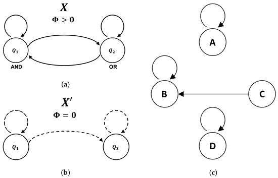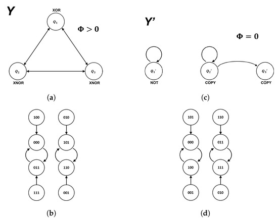 Figure 8b,d). In our examples, the future state of the system as a whole is completely determined its current state for both the zombie system and its conscious counterpart. Similarly, the future state of each individual component within a given system is completely determined by its inputs (i.e., it is a deterministic logic gate). This presents a challenge for understanding in what sense a system with