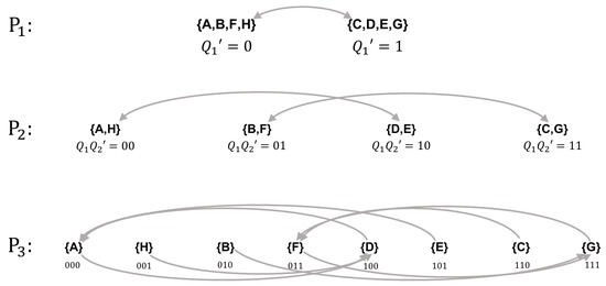 . With the specification of the logic for the third coordinate, the cascade decomposition is complete and the new labeling scheme is shown in
