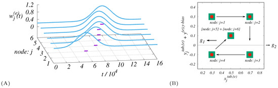 Section 7.2 discusses numerically the effects related with these changes. Although the diversification of for a specific set of nodes is an interesting opportunity, we have left it for possible separate reports. The Gaussian form implies that dynamic weights are converted at the time of activation of . This allows us to focus on a flexible model of space-time changes that could be important in designing alternative exogenous scenarios. We should also remark that parameterization does not exclude nearly simultaneous activity on many nodes in the specification.