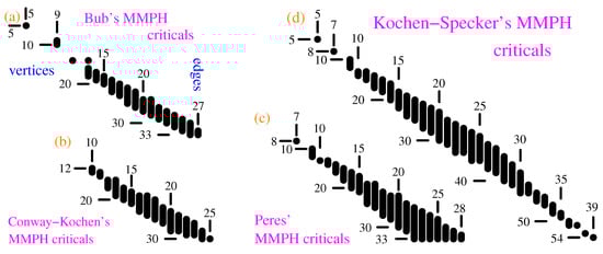 (a) Distribution of MMPH non-binary critical sets generated from Bub’s MMPH non-binary master set; (b) Conway-Kochen’s criticals; (c) Peres’ criticals; (d) Kochen-Specker’s criticals.