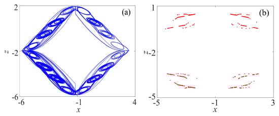 - Ai, X.X.; Sun, K.H.; He, S.B. Compound attractors between different chaotic systems. Acta Phys. Sin. 2014, 63, 40503. [Google Scholar]