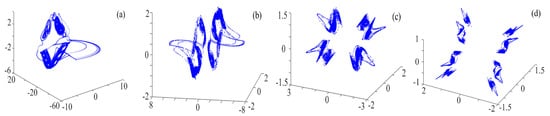 3.3. Chaotic Attractors with the Ternary Fractal Transformation