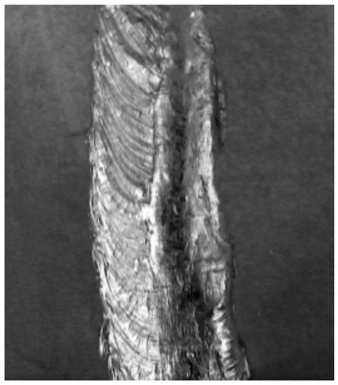 The input data for the proposed diagnostic system were represented in the form of grayscale laboratory samples of metal sheet welds in JPEG format. The samples were pre-classified as OK (correct) and NOK (incorrect) (Figure 1 and Figure 2). Defective weld samples (NOK) include samples of various surface defects such as irregular weld bead, excess weld metal, craters, undercut, etc. Welds images are captured under the same illumination and have the same resolution 263 × 300 pixels. The total number of evaluated sample images was 6422.