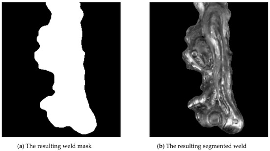 The segmentation result—the mask and the masked weld can be seen in Figure 9.