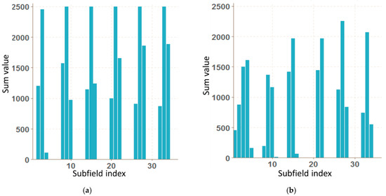 Graphs of vector of sums of subfields in the mask for OK (a) and NOK (b) weld.