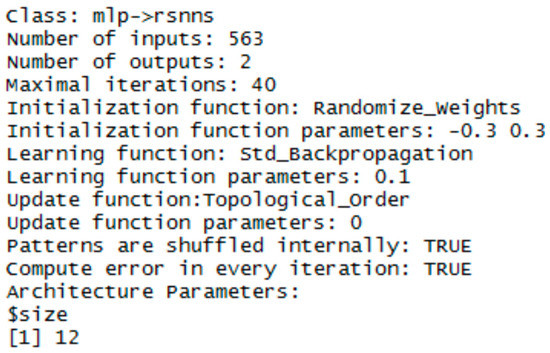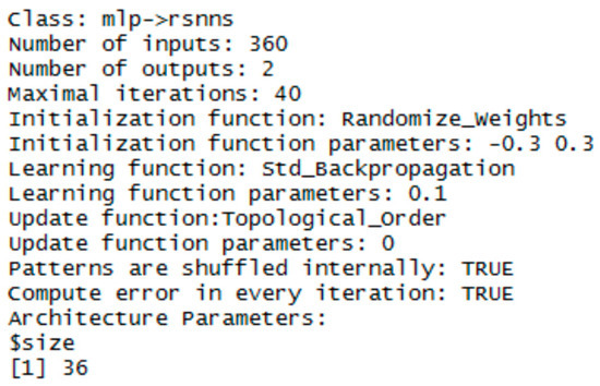 Several neural network architectures were configured for comparison and testing. Their parameters were changed during the experiments and the experiment results were compared and evaluated. Both RBF and MLP networks were configured in The Stuttgart Neural Network Simulator for R language - RSNNS library, the MLP networks were configured in the Keras library, and the convolution networks were configured in the Keras and the MXNet libraries.