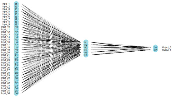 Weld images and feature vectors were stored in two data structures of type list. The first list represented welds classified as NOK (incorrect); the second list welds classified as OK (correct). For neural networks, it was necessary to combine data, i.e., to transform and randomly mix them. For MLP and RBF networks, each input vector has to have assigned a classification value 0 (incorrect) or 1 (correct). Then, the vectors were merged together and with randomly mixed elements. Next, the L2-normalization was applied to the data. Finally, 85% of training and 15% of test samples were selected randomly. For convolution neural networks, the images were 5-times reduced, then the data type was converted to a three-dimensional array data structure. In the arrays, the dimensions were transposed to represent to correspond to the following structure: . The vector of zeros with the same length as the first dimension corresponded to the first array (array of NOK welds). The vector of ones corresponded to the second array (array of OK welds). The arrays and vectors were merged into a common list and their elements were mixed randomly. Then, 77% of training samples, 15% of test samples and 8% of validation samples were selected.