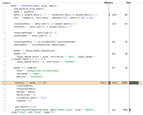 Training profiling for RSNN library was done next. Although training in the Keras library allocated less memory, the training time was several times longer than in case of the RSNNS library. Using vector of sums of subfields in the mask, the MLP network training time in RSNNS took less than one second, while using the Keras library was tens of seconds. The list of training profiling results is shown in Table 5.