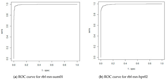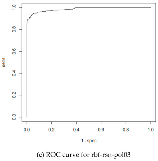 From the matrices (10) it is evident that the RBF network performed bad when classifying NOK welds—they are often classified as OK. ROC curves of trained RBF networks are depicted in Figure 36.