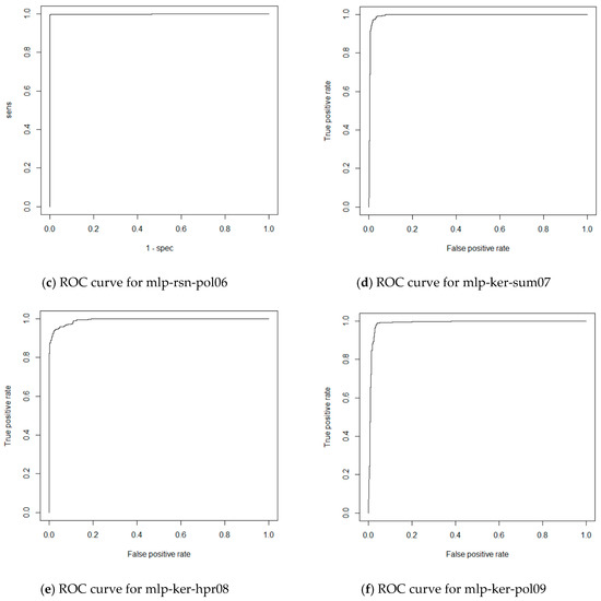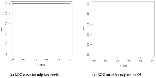 Classification error in convolution neural networks was minimal, therefore the ROC curve was evaluated as ideal for all experiments with indistinguishable differences. For all neural nets, the ROC curve was the same (Figure 38).