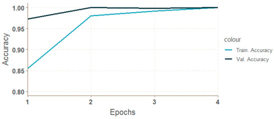 The accuracy was computed from the confusion matrix and is expressed as the ratio of correctly classified samples to all samples, see Equation (5) [20].