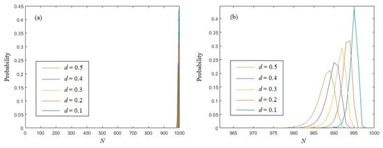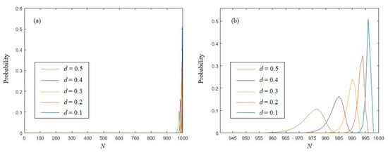 In order to have a more intuitive understanding, the probability distribution of the eigenvalue is depicted in Figure 1 with different undifferentiated distances. The length N is set to be 1000.