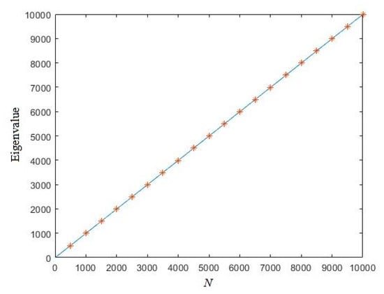 for moderate–large N. When we randomly select an initial condition, Figure 5 shows the eigenvalue of this generated logistic sequence. Obviously, the eigenvalues of this sequence are all around the theoretical curve we derived in Equation (20).
