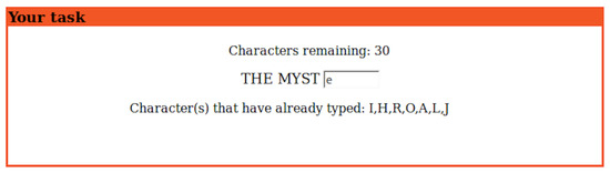 Our user interface for our cognitive experiment on Amazon Mechanical Turk. It provides: (i) the number of characters still available for use, (ii) the preceding characters, and (iii) the set of incorrect characters already used.