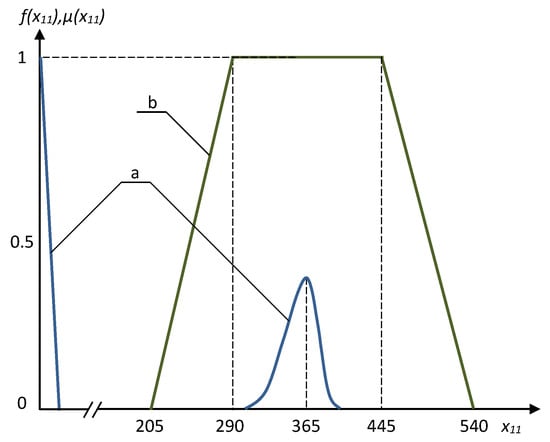 Similarly, the membership function can be interpreted as the corresponding risk belonging to the interval [0, 1] and calculated as 1 – .