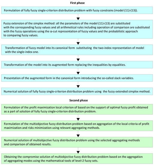 The enlarged flowchart of the developed two phase method for multiobjective fuzzy distribution problem is presented in Figure 7.