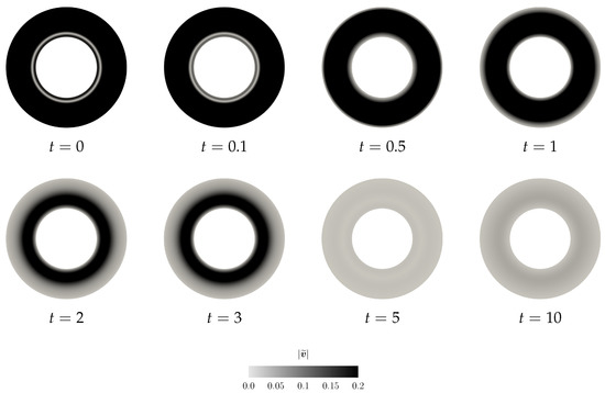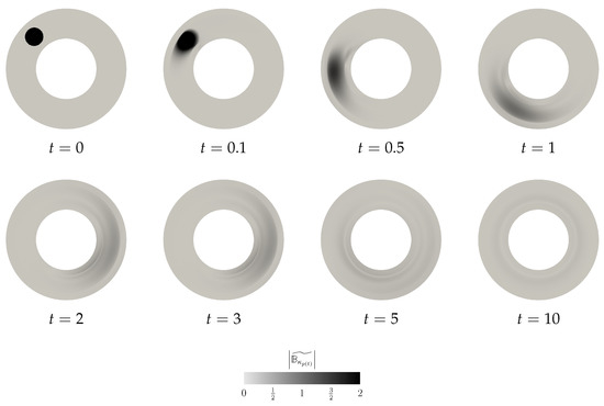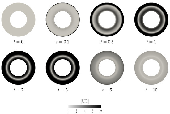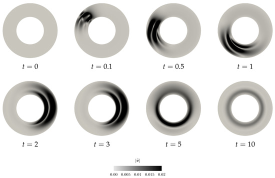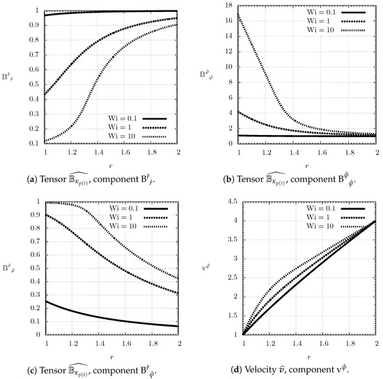 and the solution of Equation (11) is . Moreover, if , then the second term in Equation (10), that is the elastic contribution to the mechanical energy, vanishes, and the mechanical energy of the fluid reduces to the kinetic energy only. Finally, if , then the additional term in the Cauchy stress tensor in Equation (9d) vanishes. This means that for the governing equations in Equation (9) reduce to the standard incompressible Navier–Stokes equations.