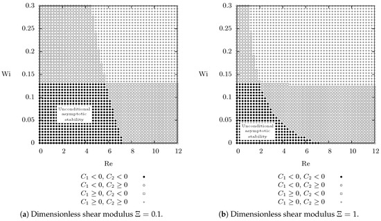 - Renardy, M. Some global stability results for shear flows of viscoelastic fluids. J. Math. Fluid Mech. 2009, 11, 100–109. [Google Scholar] [CrossRef]