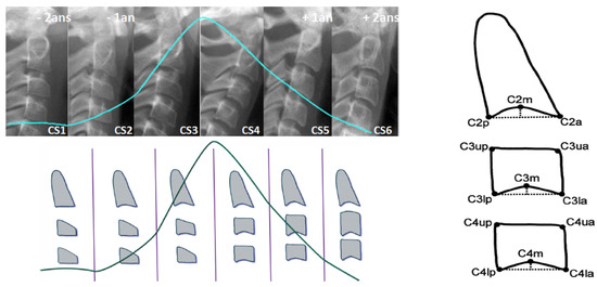 - Raberin, M.; Cozor, I.; Gobert-Jacquart, S. Les vertèbres cervicales: Indicateurs du dynamisme de la croissance mandibulaire? Orthod. Fr. 2012, 83, 45–58. [Google Scholar] [CrossRef]