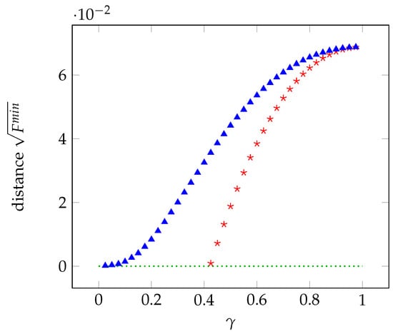 Numerical tests show that this algorithm, when used for computing the distance from the local polytope, stops after a few iterations. Furthermore, only a few trials of the initial random sequence are required for convergence of Algorithm 1. We also note that the probability of a successful simulation of the oracle increases when is close to the optimal solution , suggesting that the optimality conditions (22)–(24) play some role in the computational complexity of the oracle. Pragmatically, we have chosen the number of trials equal to , such that the computational cost of simulating the oracle contributes to the overall running time with a constant multiplicative factor and, thus, the sixth-power law of the oracle-assisted algorithm is not affected.