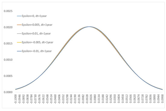 Figure 2 shows the same kernels after a 1 year time period. As noted above, the ratio is a measure of the degree to which the quantum effects will be observed. As the time parameter t tends to infinity, the kernel function will asymptotically tend to a Gaussian kernel. In fact this reproduces another problematic observation of the behaviour of real financial markets, namely the flattening of the forward skew.