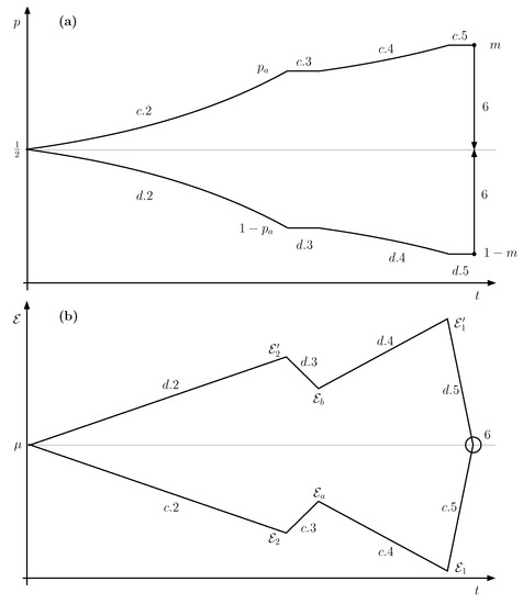 is the entropy of . The cases (a) and (b) occur with equal probabilities so that averaging Equation (17) and Equation (18) yields
