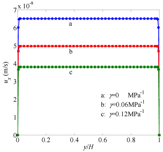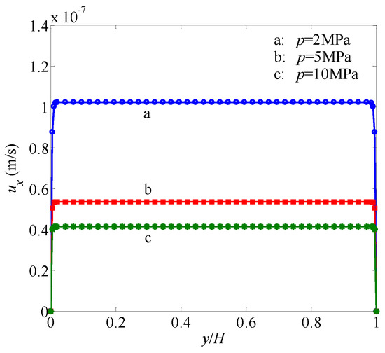 with , where is the height of the channel. Owing to the extremely low velocity in tight porous media without fractures, the nonlinear inertial effect (i.e., the fourth term on the left-hand side of Equation (28)) can be neglected. Therefore, Equation (28) is simplified as: