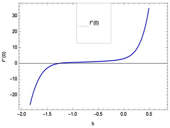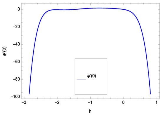The non-linear differential Equations (10)–(13) with boundary conditions in Equations (14) and (15) have been solved with the help of symbolic computation software MATHEMATICA employing HAM program. The effects of embedded parameters on the velocity f(), temperature (), concentration (), motile gyrotactic microorganisms () fields and entropy generation have been plotted in Figures 6–17, 18–25, 26–35 and 36–46 respectively. Similarly the residual error graphs have been shown in Figures 54–57. The schematic illustration of the problem is seen in Figure 1. Liao [] introduced h curves for the convergence of the series solutions of the problems. Therefore, the admissible h-curves for f(), (), () and () are drawn in the ranges −1.3 ≤ h ≤ 0.0, −1.8 ≤ h ≤ 0.2, −2.1 ≤ h ≤ 0.1 and −2.0 ≤ h ≤ 0.0 in Figure 2, Figure 3, Figure 4 and Figure 5.