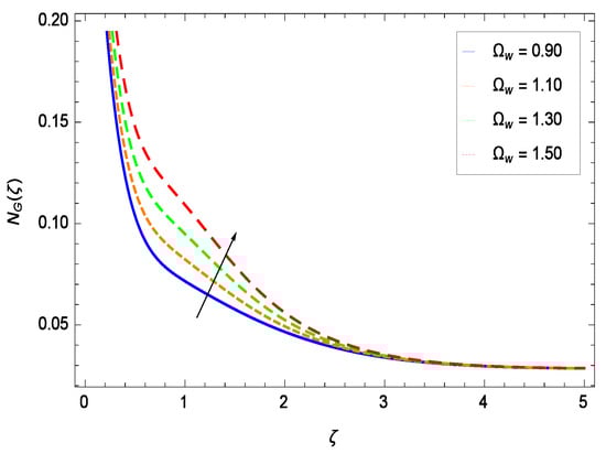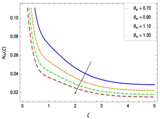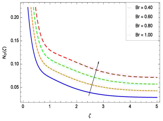 Applying Equation (9), the non-dimensional form of Equation (18) for entropy generation number N() is