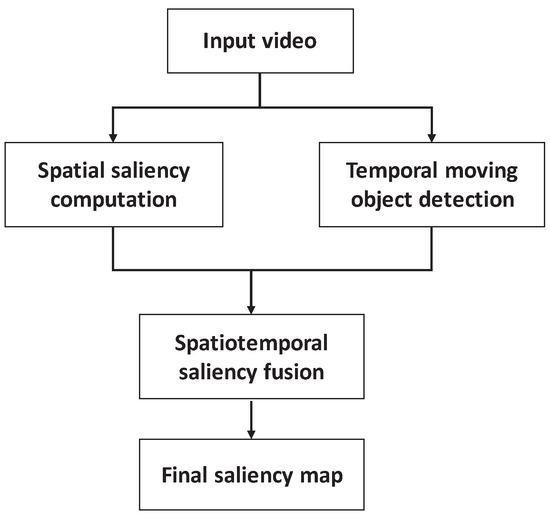 For the input video signal, the spatial saliency and temporal saliency are computed using the spatiotemporal information, respectively. Therefore, according to a certain weight coefficient, the spatial and temporal saliency are merged into the final saliency map.