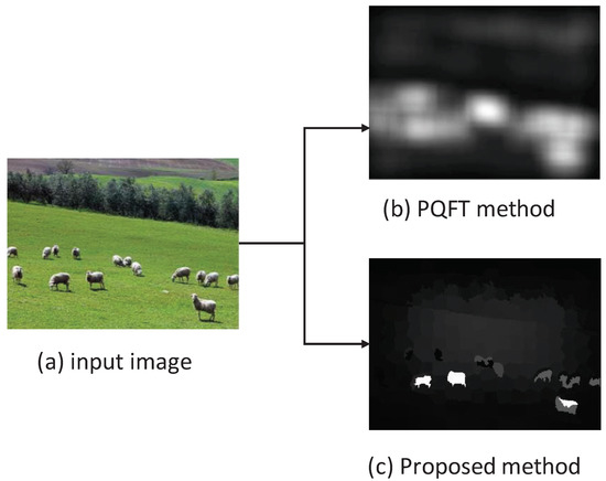 Figure 4 shows an example of the saliency maps calculated by PQFT and the proposed methods, and it was discovered that the proposed method can predict eye fixations better than the PQFT method.