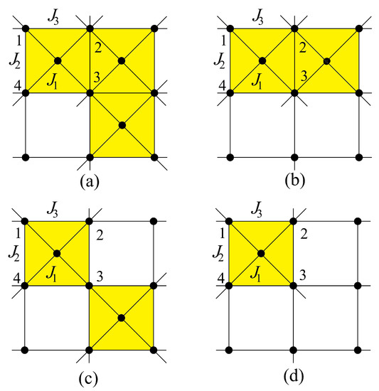 - Debauche, M.; Diep, H.T. Successive reentrances and phase transitions in exactly solved dilute centered square Ising lattices. Phys. Rev. B 1992, 46, 8214. [Google Scholar] [CrossRef]