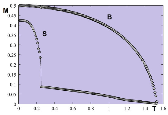 - Quartu, R.; Diep, H.T. Partial Order in Frustrated Quantum Spin Systems. Phys. Rev. B 1997, 55, 2975. [Google Scholar] [CrossRef]