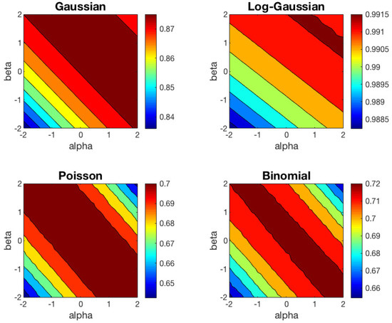 within this region are different for each type of distribution. Finally, we would like to highlight that the regions with good performance for Poisson and Binomial datasets are narrower than the region obtained for the Gaussian dataset.
