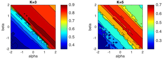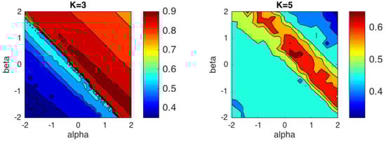 Figure 7 shows the contour plots of the average accuracy obtained over 50 trials with random initializations. The best performance for Iris dataset, with ACC =