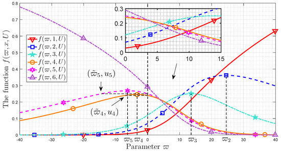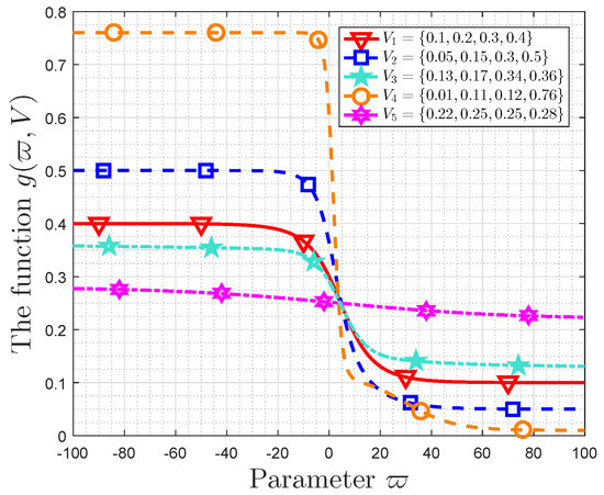 Figure 3 shows that the importance coefficient versus the function . The utility distribution is and the importance coefficient is varying from to 40. It is easy to check that . We denote .