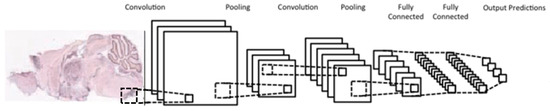 A typical CNN architecture (Figure 5) is structured as a series of components from two types, convolutional layers and pooling layers. Overall, units in a convolutional layer are organized in feature maps, where each unit is connected to a local region of units in the feature maps of the previous layer, through a set of weights called a filter. This local weighted sum is then passed through an activation function, such as or , which allows such networks to solve nontrivial problems. All units in a feature map share the same filter weights, while different feature maps in a layer use a different filter. The mathematical advantage is that the number of weights to be learned is not dependent on the number of units, but on the number of feature maps and the size of the filter. This is reasonable because in spatial data such as images, often local values are highly correlated, due to the fact that image statistics are invariant to location. In other words, if a pattern appears in one part of the image, it could appear anywhere in the image.