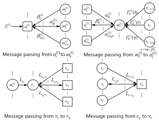 are incoming and outgoing messages at variable nodes, respectively. We also define