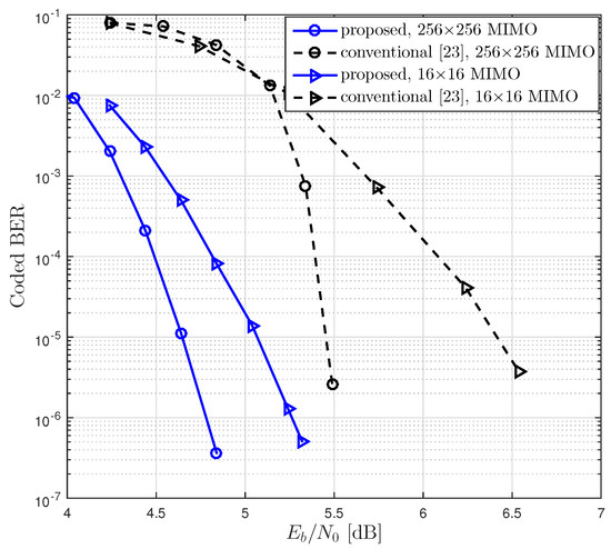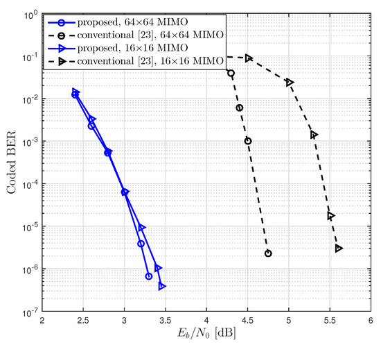 Let us think about the computational complexity of FG-GAI BP detection in terms of the number of multiplications. We focus on one detection iteration for one channel use with a given modulation. It is easily inferred from Algorithm 2 that the FG-GAI BP detection requires a computational complexity of