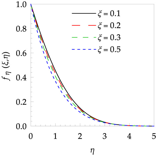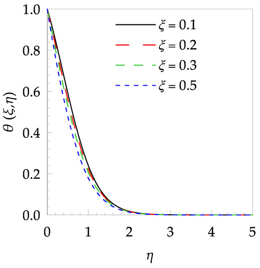 By utilizing the Newton-Raphson Method (NRM), the nonlinear algebraic systems and can be handled and then solved accurately, in order to find the numerical estimate values of the solutions . In this unsteady boundary layer flow problem, the solutions of the initial unsteady flow corresponding to the algebraic system (S0) are taken as the initial conditions for the problem under consideration. Therefore, for generating numerically the general solutions with , the non-autonomous differential system Sξ along with the initial conditions is integrated temporarily using an auto-adaptative implicit algorithm based on the Gear Method (GM). Furthermore, to achieve an absolute accuracy of the order of , it is found that the dimensionless time-step size and the number of collocation points must be selected as and in all subsequent analyses.