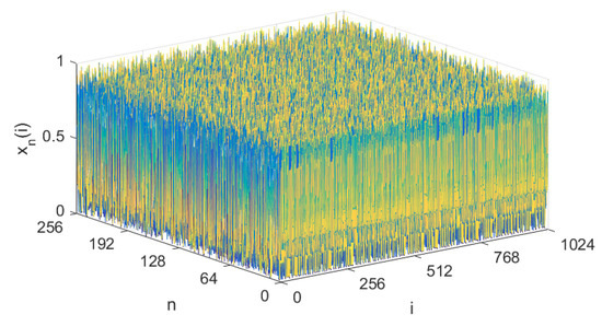 Two discrete chaotic maps are used in IEA-DESC [37], one is the logistic map and the other is a spatiotemporal chaos map based on the so-called new chaotic algorithm (NCA) given in Reference [41]. The iterative equation of the Logistic map is represented as