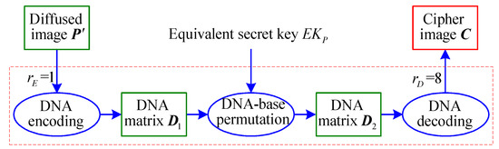 However, since each DNA-base only takes four values, A, G, C, and T, such an input matrix does not exist. To cope with the problem, an appropriate transformation is inevitable. Therefore, the specific analysis steps to determine the equivalent secret key , as in Figure 3, are detailed as follows: