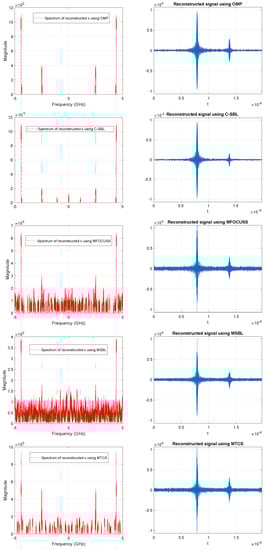 - Mishali, M.; Eldar, Y.C. Blind Multiband Signal Reconstruction : Compressed Sensing for Analog Signals. IEEE Trans. Signal Process. 2009, 57, 993–1009. [Google Scholar] [CrossRef]